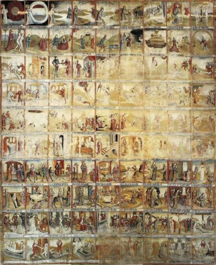 Fastentuch Fastentücher verhüllten in der Fastenzeit Reliquien und Kreuze. In 90 Bildern erzählt es die Geschichte Gottes für den Menschen.
