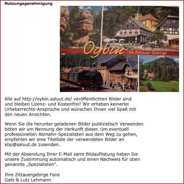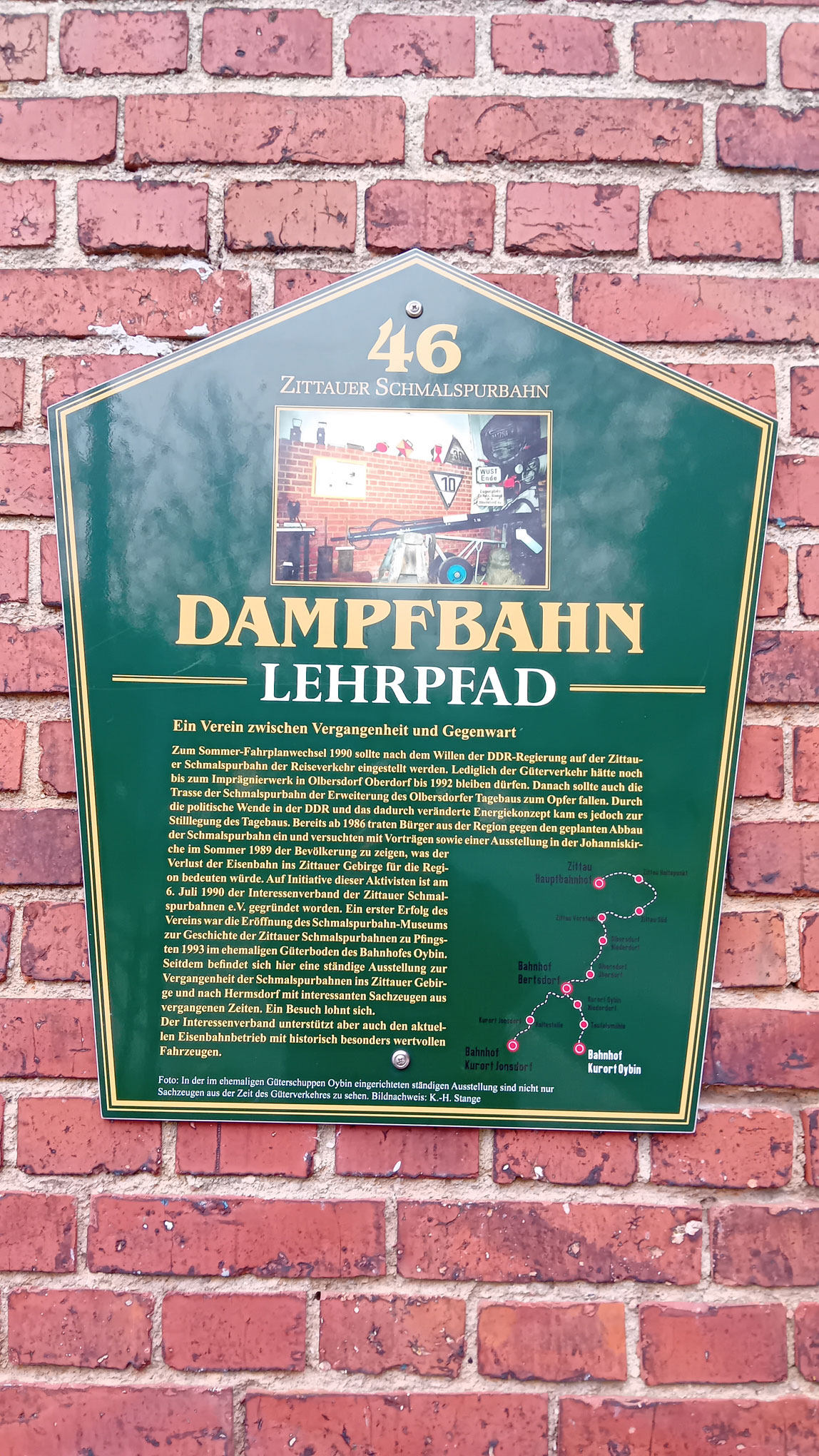 Zitat Oybin.com Schmalspurbahn: Die „Bimmelbahn“ verkehrt täglich mit Dampflokomotiven von Zittau nach Oybin. Bei schönem Wetter kann man in dieser Bahn sogar im „Cabrio“ fahren – einem offenen Aussichtswagen, der den Fahrgästen einen fantastischen Blick auf die einmalige Landschaft ermöglicht. Im Gelände des Bahnhofes Oybin finden Besucher ein kleines Museum zur Geschichte der Schmalspurbahn.